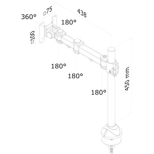 Neomounts Products Eur Neomounts Neomounts Pro Grommet Mount for Flat Panel Display - Black - Height Adjustable - 25.4 cm to 66 cm (26") Screen Support - 12 kg Load Capacity - 75 x 75, 100 x 100 - VESA Mount Compatible